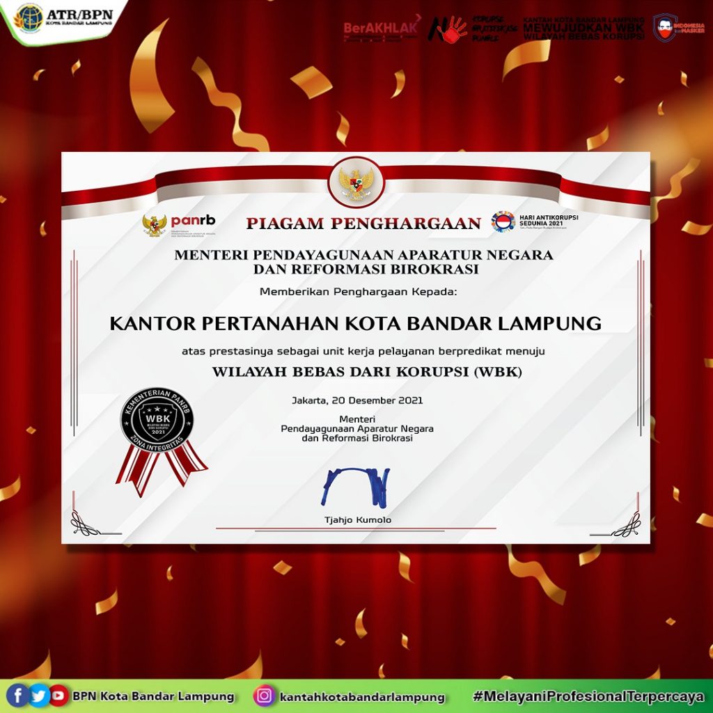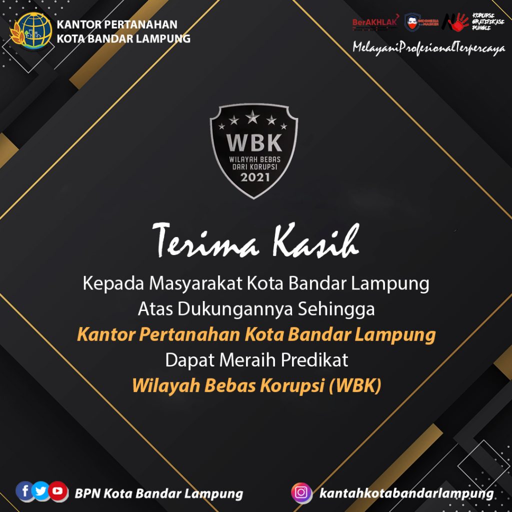 Terima Kasih Kepada Masyarakat Kota Tanjungbalai atas dukungannya sehingga Kantor Pertanahan Kota Tanjungbalai dapat meraih Predikat Wilayah Bebas Korupsi (WBK) Tahun 2021